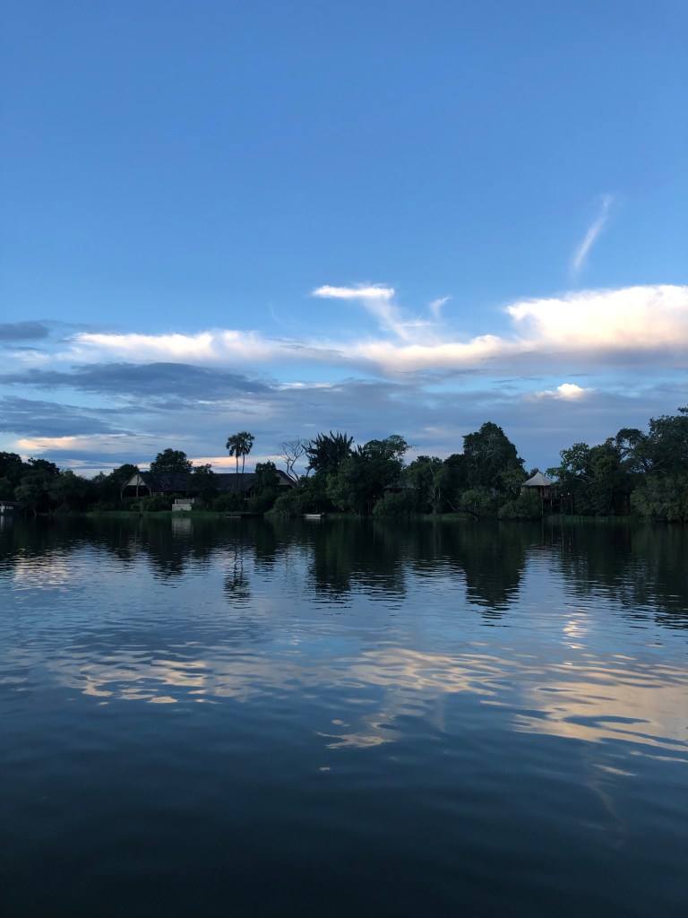 in the daytime we bask in the sun, but the rays are harsh in this swampy corner of the river. it rubs our skin is red and raw, but in two days time, the desirable brown will develop like a roll of film and the water is murky and warm as we braid thread waiting for midday to slip away. there are trees on the riverbank and just where the water kisses the sand but they haven’t had leaves for a long time. i’m chewing on my fingers while dad splashes the birds and laughs, but i’m not laughing. the water looks smooth and silky; we aren’t fooled, we know the shadows conceal a patient crocodile lurking below the surface. and so as we leave behind this small rocky island with murky water and dead trees and crocodiles i can’t help but look back at its shrinking outline on the horizon like it’s a mirror.